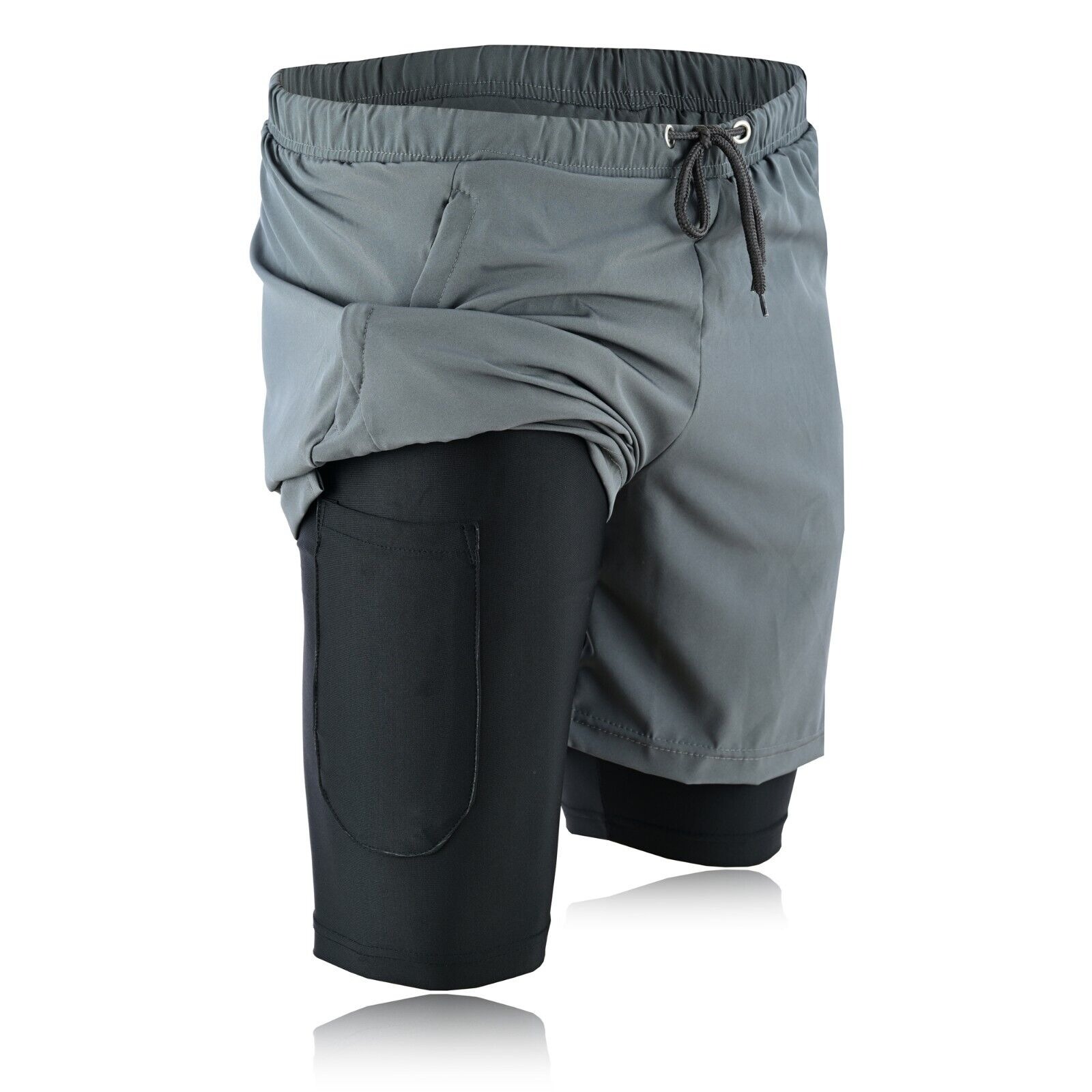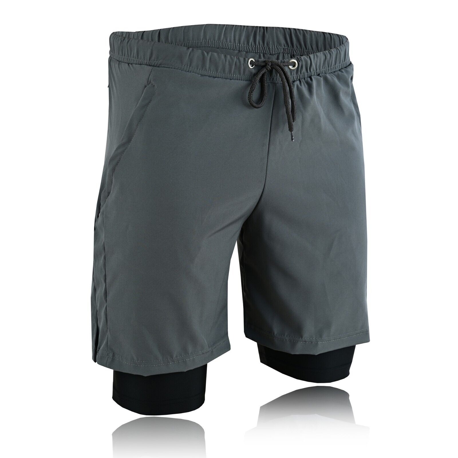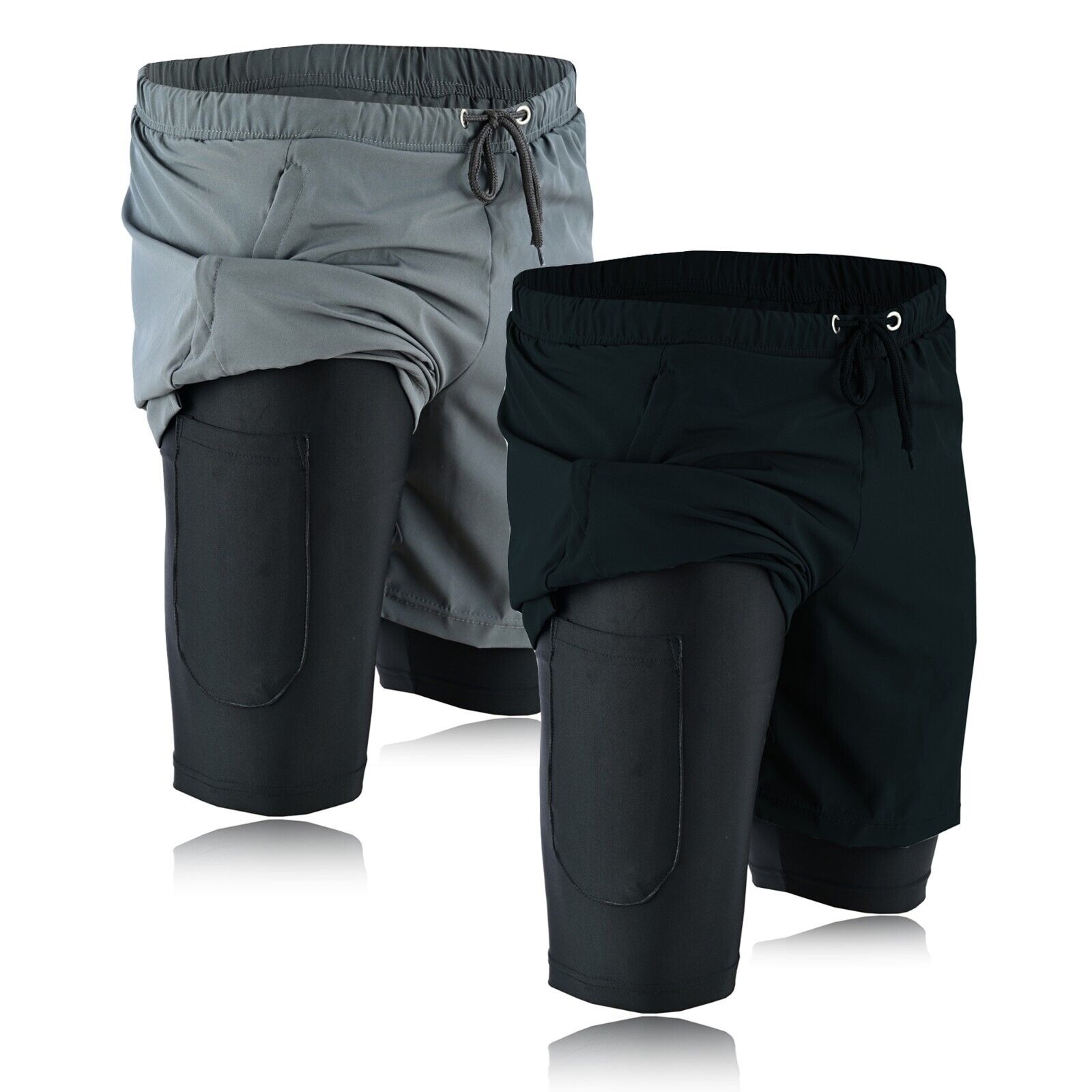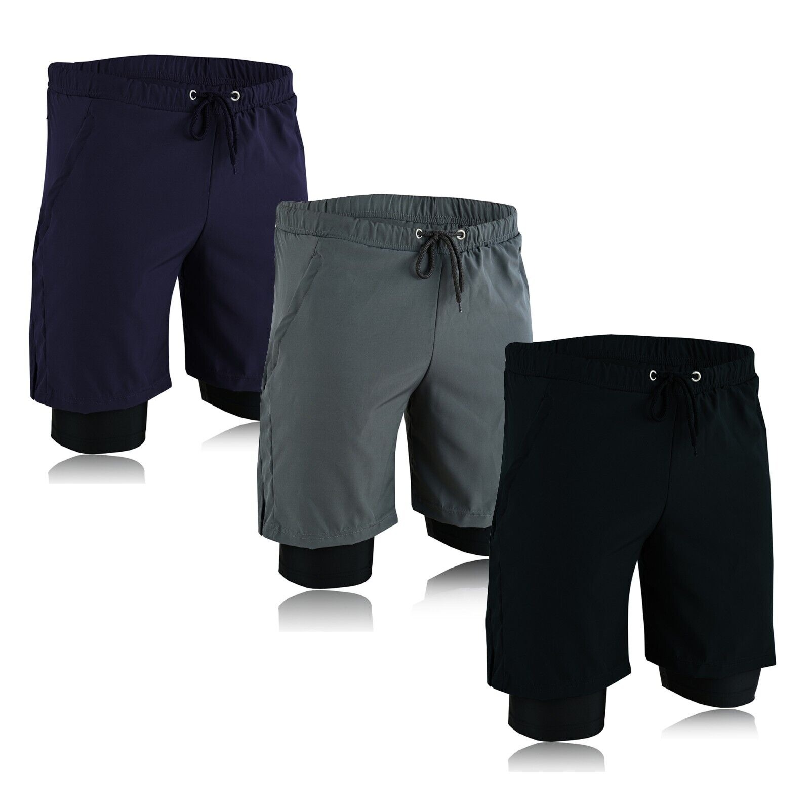 Mens 2 in 1 Gym Running Soft Sports Training Fitness Shorts.